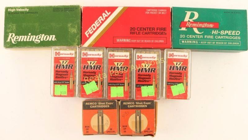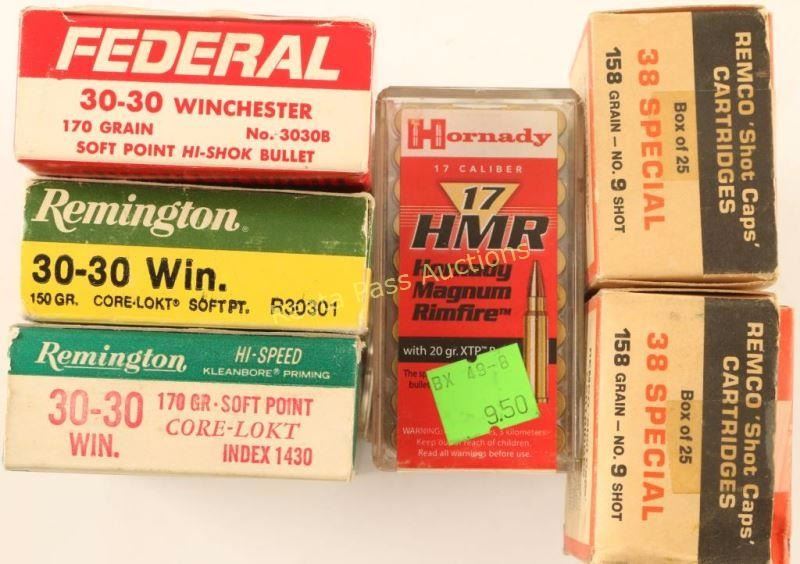 (250) rounds of Hornady .17 HMR 20 grain XTP, (60) rounds of mixed .30-30 Win & (2) Boxes of Remco .38 Special shot caps.