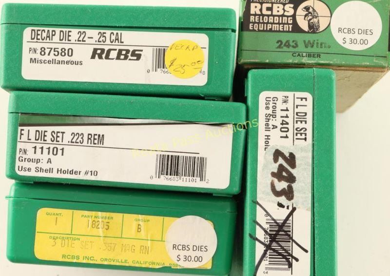 Includes 243 Win, Decap die 22-25, 223-4 die set and a 357 Mag die set.
