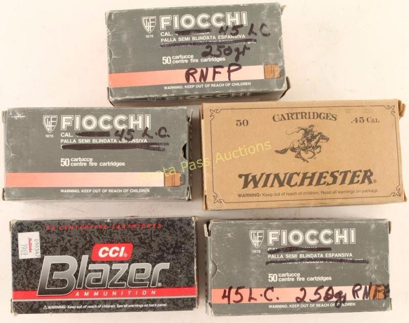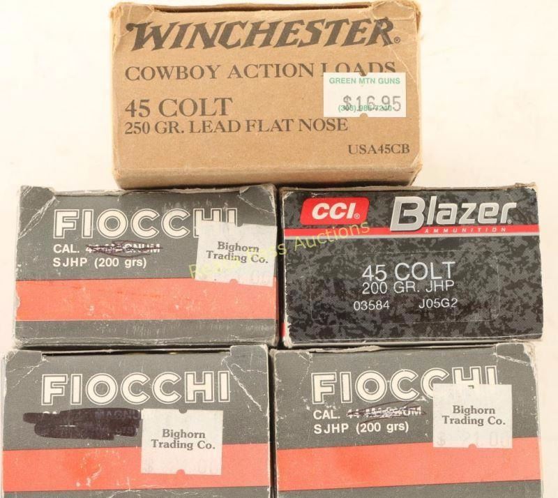 (3) boxes of Fiocchi, (1) box of Blazar and (1) box of Winchester cowboy action loads.