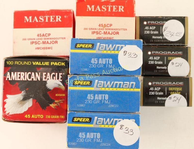 Includes 3 boxes of Speer, 2 boxes of Master, 3 boxes of Pro Grade, and 1 box of American Eagle. 400+ Rds