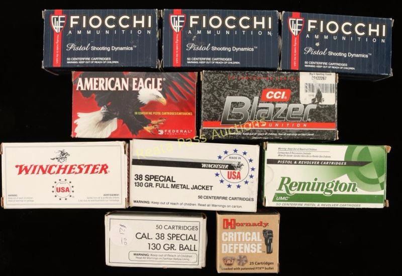Includes 3 boxes of Fiocchi, 2 boxes Win, 1 box Blazer, and others. 450+ Rds