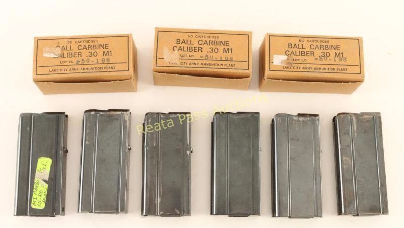 (6) M1Carbine Mags and three full boxes of Lake City ammo unopened 150rds.