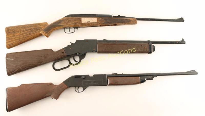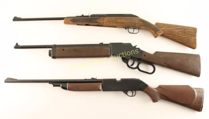 Includes a Marksman Model 740 break action rifle, Powermaster 66 air rifle, and a plastic Ideal lever action toy gun.