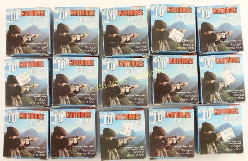 Fifteen 10 round boxes of metal cased ammunition for Saiga shotgun by Barnaul Ammunition Russia.