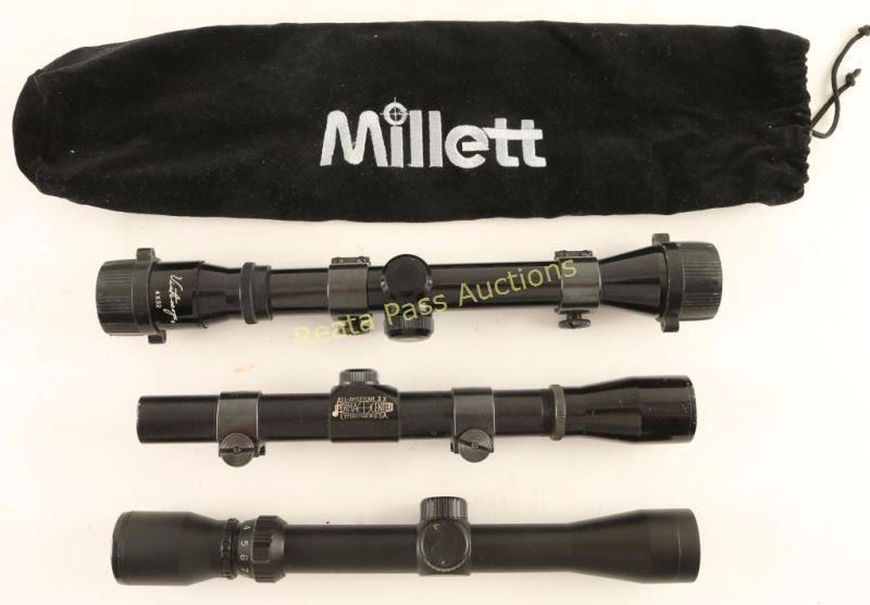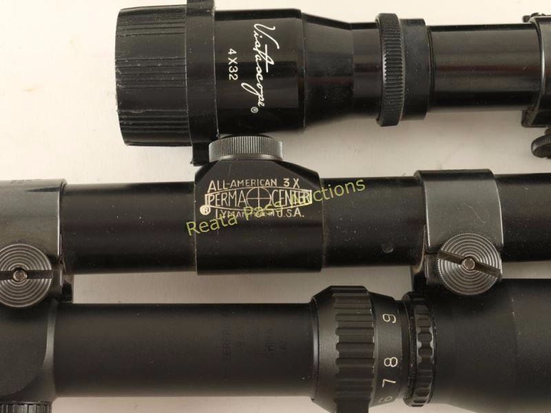 (1) Lyman All American 3x Perma Center, (1) Vistascope 4x32mm and (1) Chinese 3-9x32mm