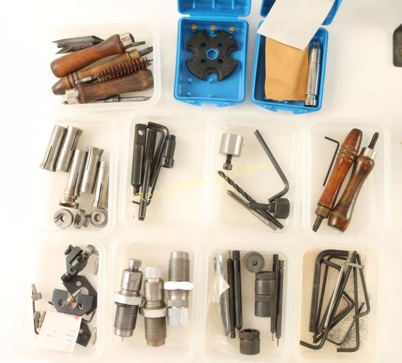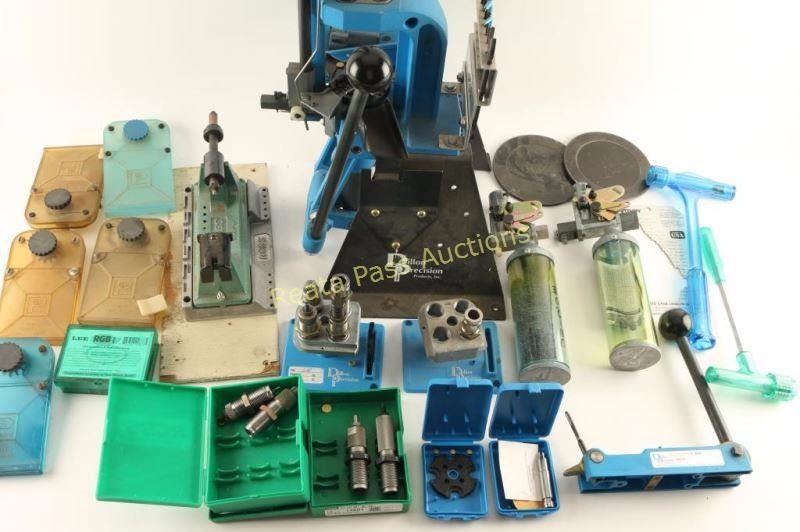 Quality 4 Stage progressive press including; RCBS Trim Pro, set-ups for .38 Special, .45 ACP, .30-06, 9mm, .357 Mag, .270 Win, .223 Rem. Also includes Lee dies for 7.62x39, RCBS dies for .30-06 and numerous other components.