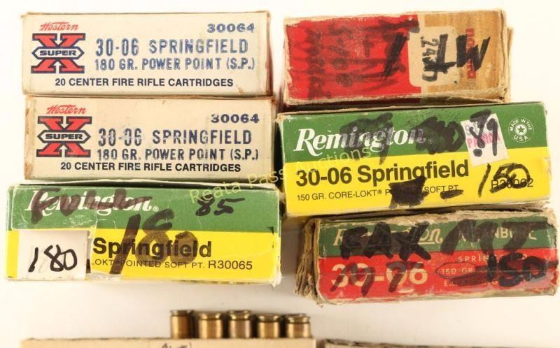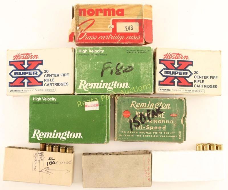 Including; 2 boxes Western Super X-40 Rds, 2 boxes Remington High Velocity-40 Rds, 1 box Remington Kleanbore-20 Rds, Super X 9 Rds, and assorted brass.