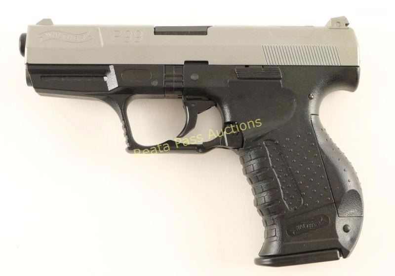 All plastic construction with textured grips. Looks and feels like the real thing.