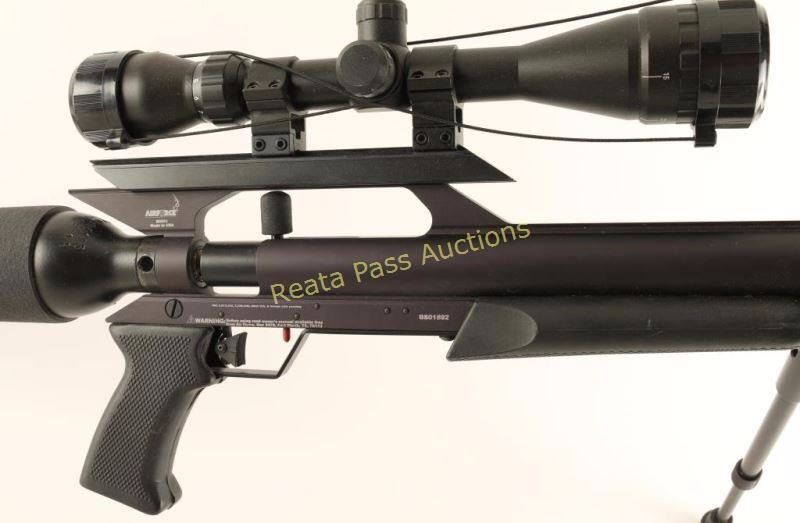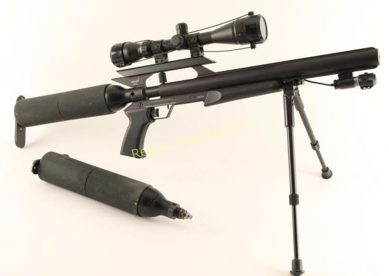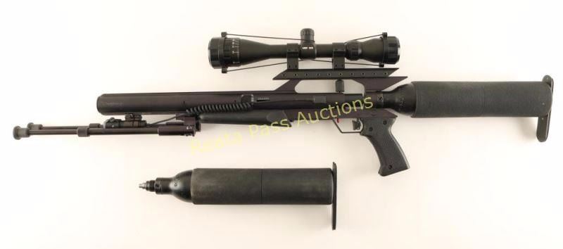 Air canister stock, comes with one extra canister, a bipod, Airforce 3-9x40 scope and a red dot laser. Good condition.