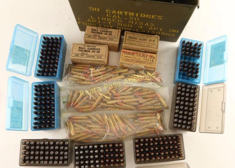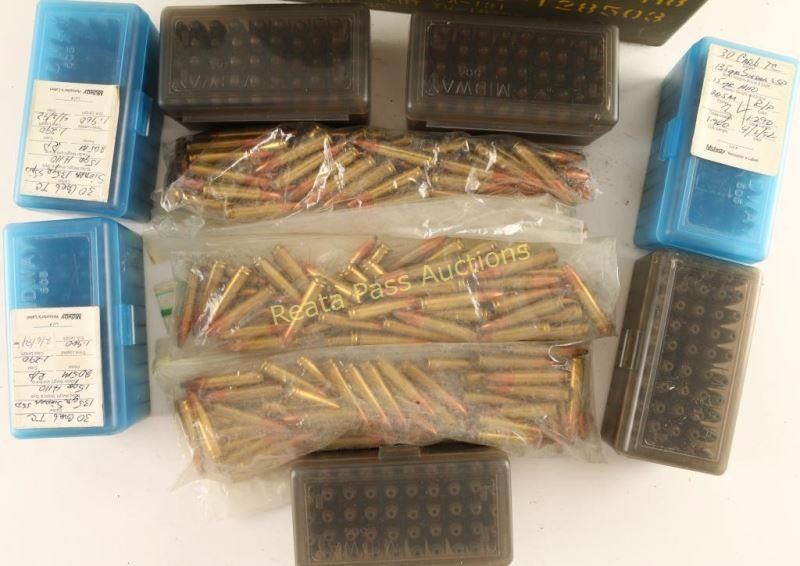Ammo can with approximately 600+ rounds of various .30 carbine ammo, including 200 rounds of Lake City ball and the rest appear to be reloads for the Thompson Contender.