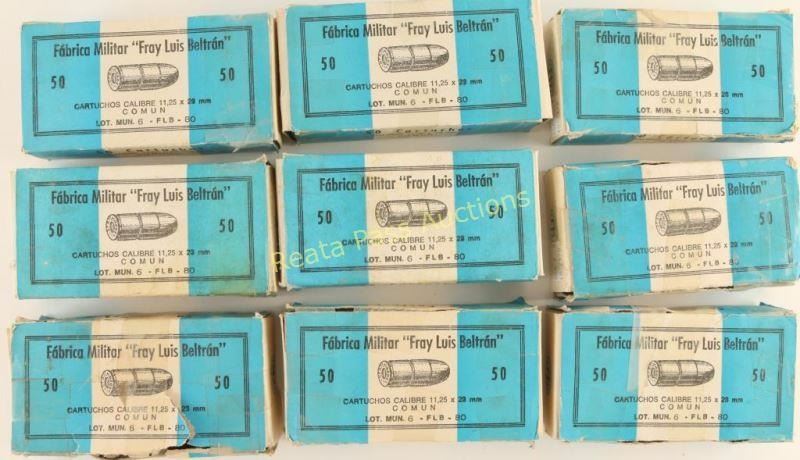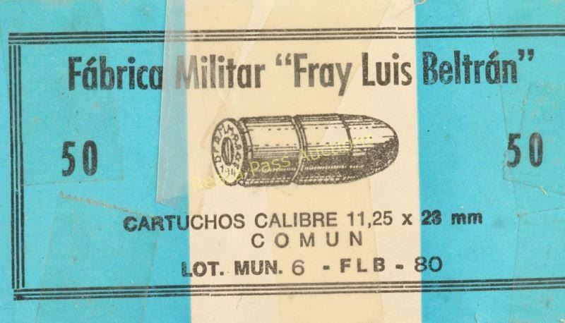 (8.5) boxes marked Fabrica Militar "Fray Luis Beltran" 11.25x23mm