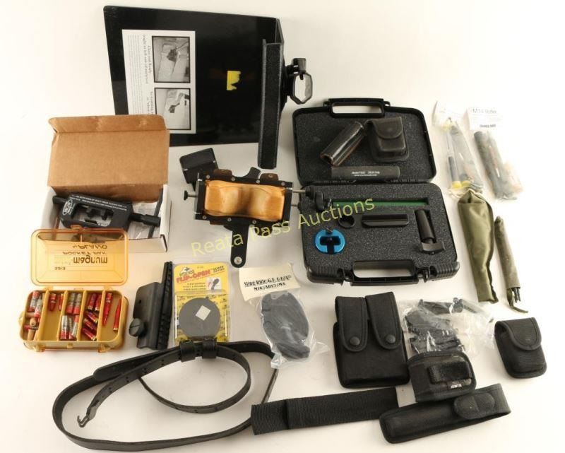 Includes a under the mattress bed holster, magazine pouches, M1 Garand maintenance kits, M1A Scope mount, sight adjustment tool for Glocks, rifle rest, snap caps, rem bolt maintenance kit and more.