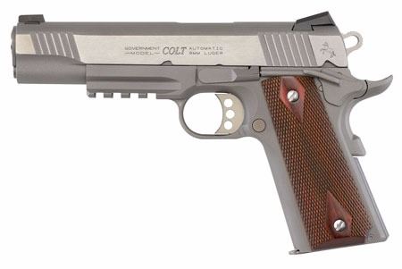 Lot 14 Colt Mfg O1072RG 1911 Government Rail Single 9mm 5" 9+1 Wood Grip Stainless