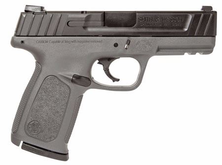 The Smith& Wesson SD9 pistol is a self-defense firearm with a gray finish