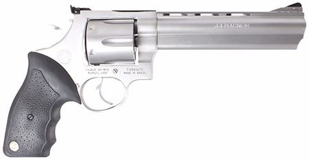 The Taurus Model 44 large frame revolver holds 6 rounds of full-power 44