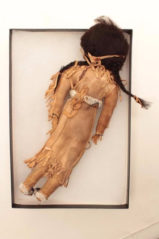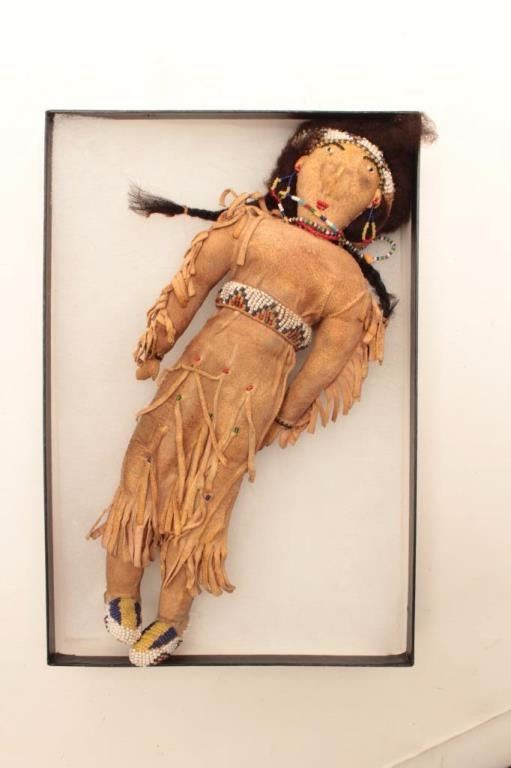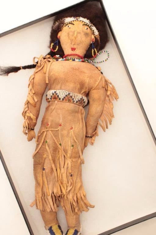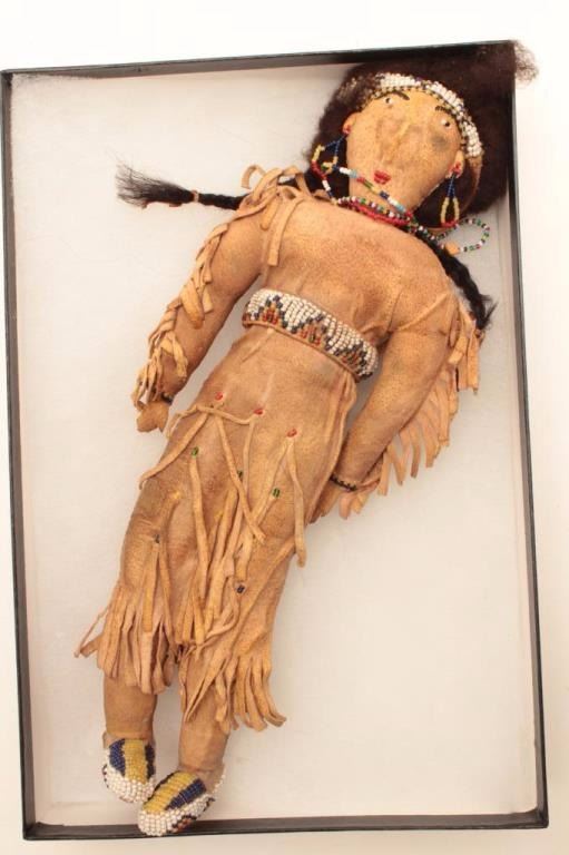 Lot 7 Beaded on buckskin doll in display; Indian style, 13” -14”. Est.: $75-$150