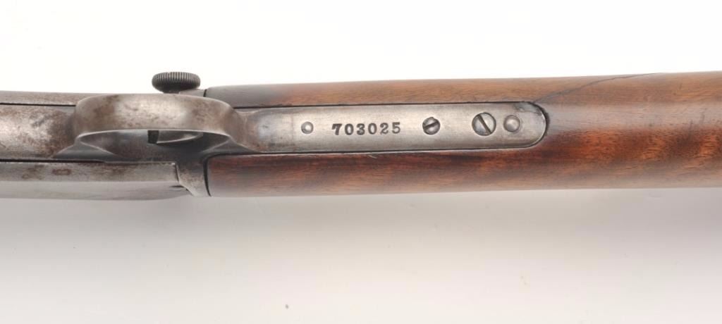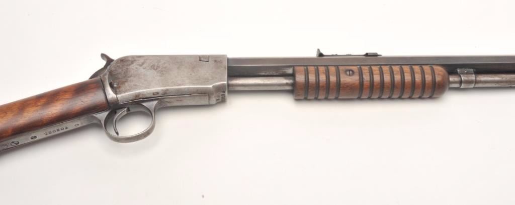 Lot 19 Winchester Model 1890 takedown pump rifle, .22 WRF caliber, serial #703025. The rifle is in good