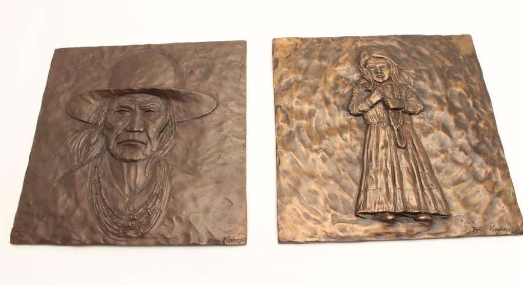 Lot 43 Pair of bronze plaques of Western themes, signed Tom Knapp (#5 of 1,000). From the estate of El