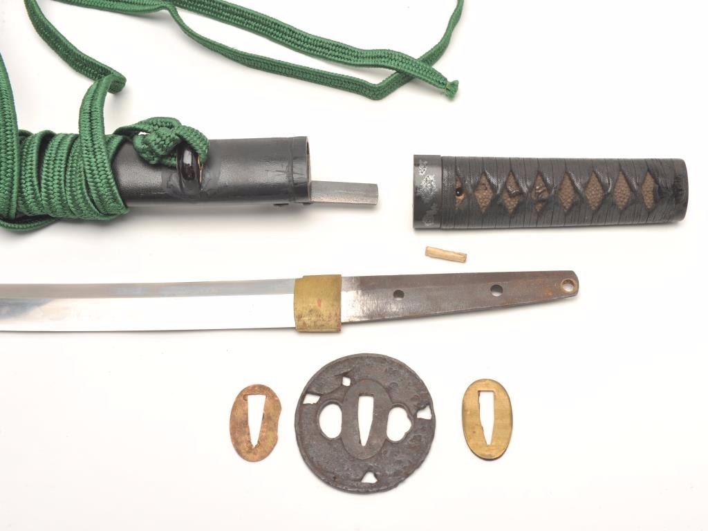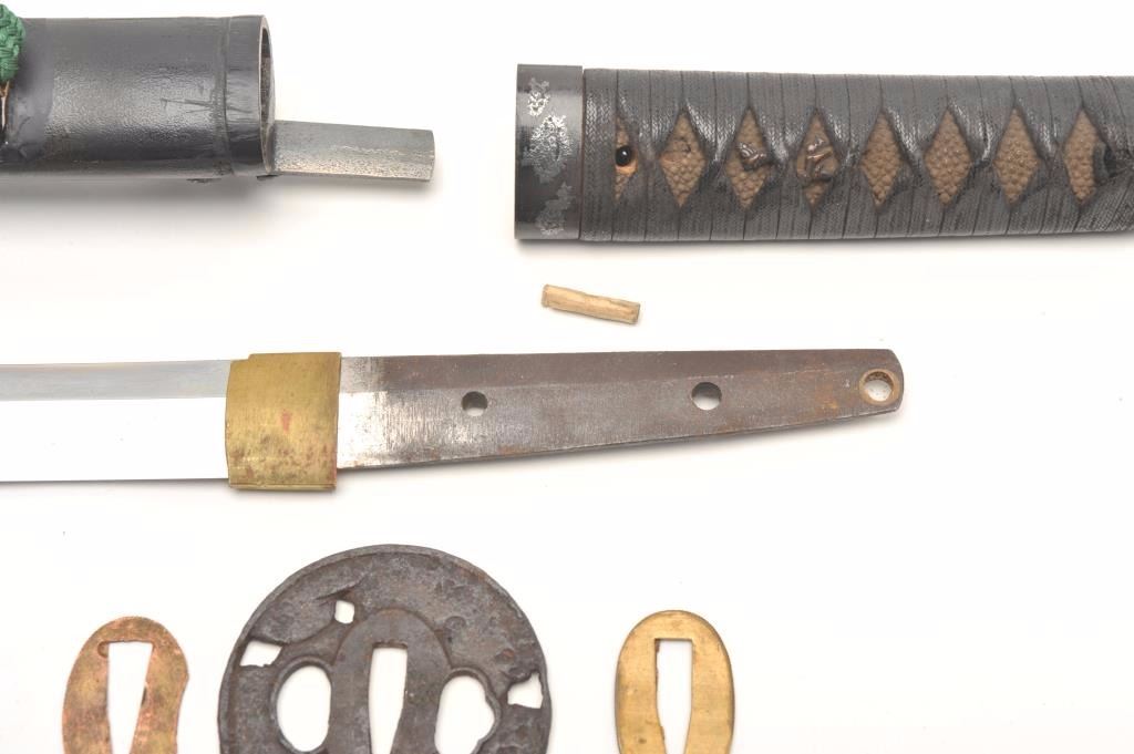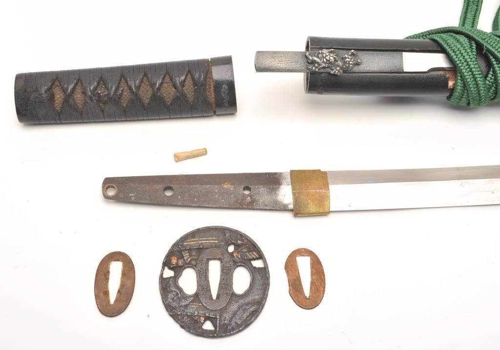 Lot 47 Koto period wakasashi (Medium sword) unsigned and full traditional mountings. The blade measures 1