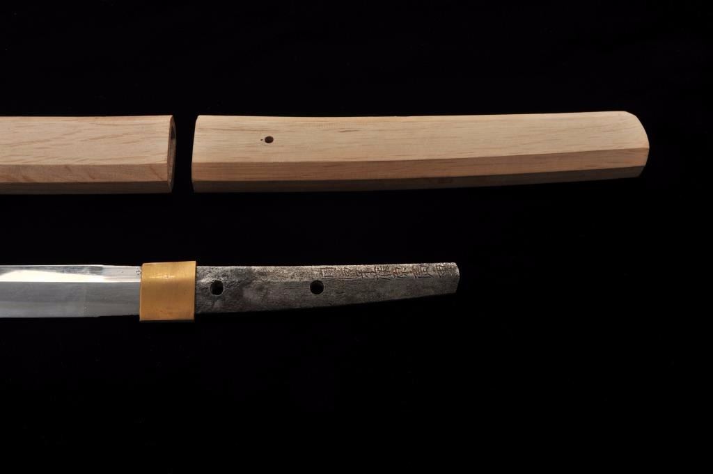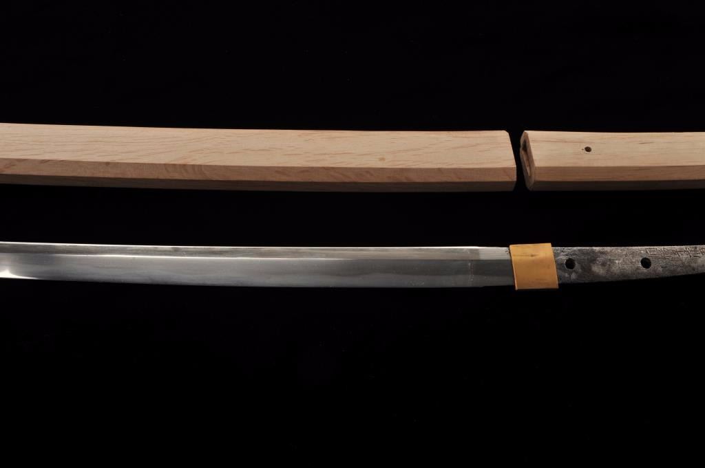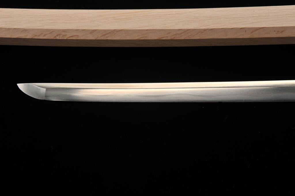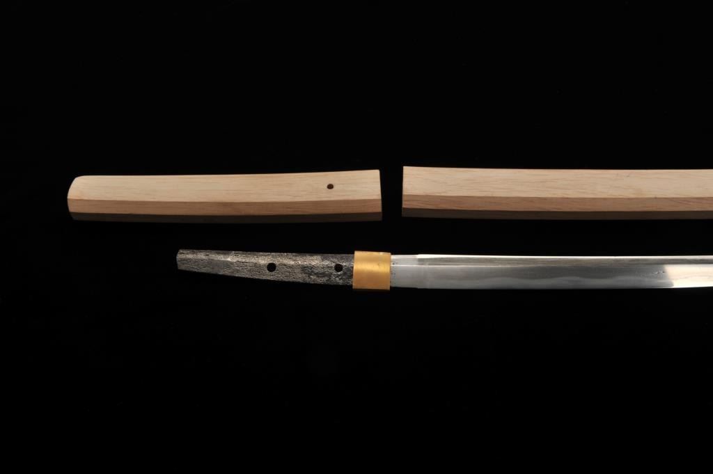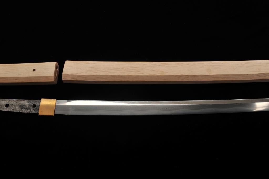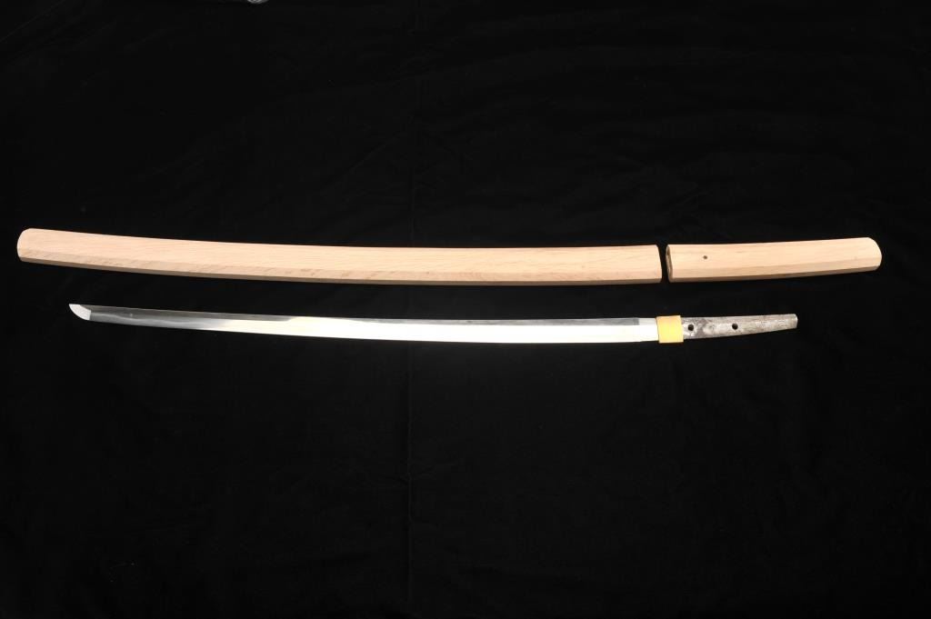Lot 50 Koto period katana signed in sira-siya. The blade measures 25 ½” and shows a fresh polish and over