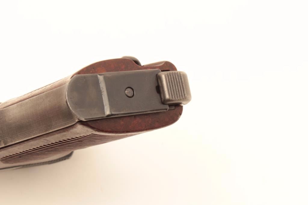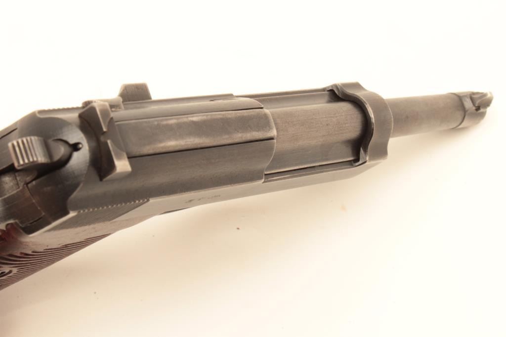 Lot 53 Mauser P-38 semi-automatic pistol, 9mm caliber, 5” barrel, bfy 43-marked, military blue finish, ma