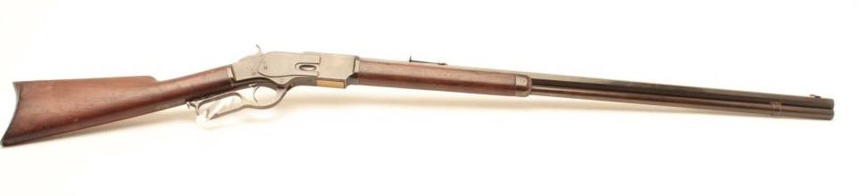 Lot 119 Winchester First Model 1873 lever action rifle, .44 caliber, 30” octagon barrel, thumbprint dust c