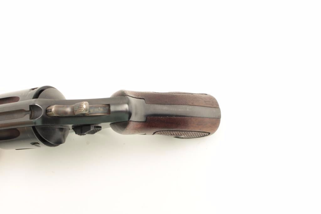 Smith and Wesson Model 1950 Military & Police Hand Ejector revolver, .44 S&W Special caliber, Serial #S-95880. The pistol is in nearly excellent condition with a 5” barrel. The pistol retains approximately 98% of itssatin blue finish with light wear at the muzzle and a faint drag line on the cylinder. The hammer and trigger display beautiful, vivid case hardening. The medallion wood Magna grips are in very good conditionshowing only light handling marks. The bore is very good, the action crisp and markings are sharp. The pistol retains its gold S&W box with all associated packing material, information brochure and cleaning rod. Thelot further includes a Smith and Wesson factory letter confirming the features as described and indicating the pistol was shipped to Rex Firearms Co., New York City on December 3, 1953. The consignor’s notesindicate that only 1,200 were made in this configuration. From the estate of Larry Gaertner. Est.: $1,500-$3,000. (C+R)