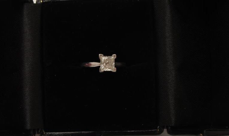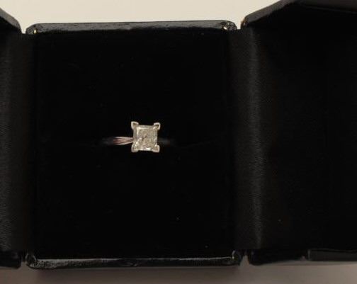 Lot 221 Approx. 1ct Princess Cut Diamond in Gold mount (not marked). Good color estimated I. Vintage last
