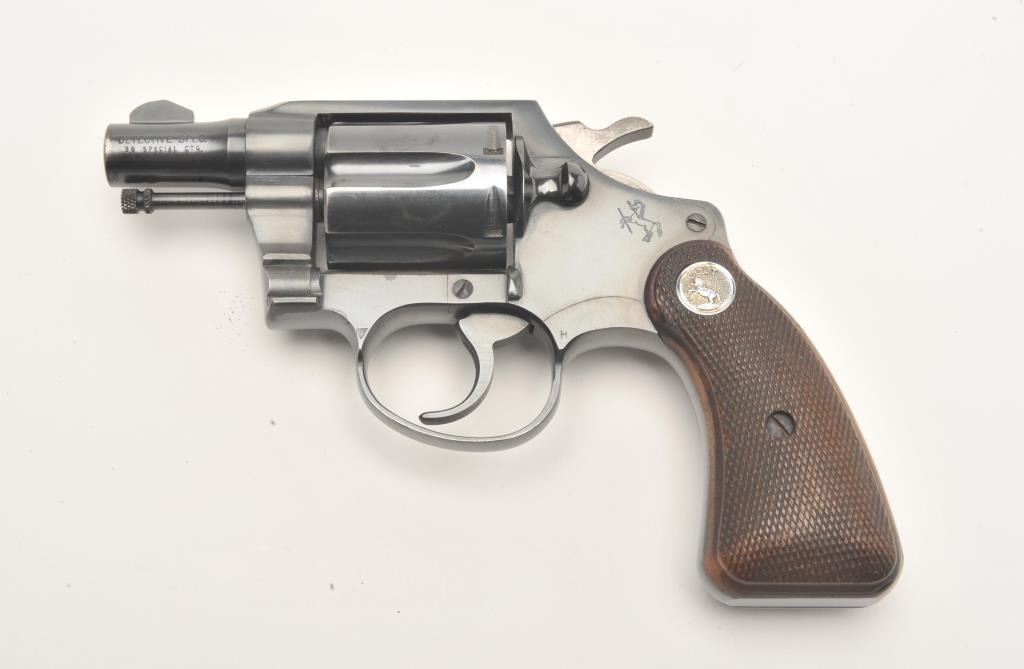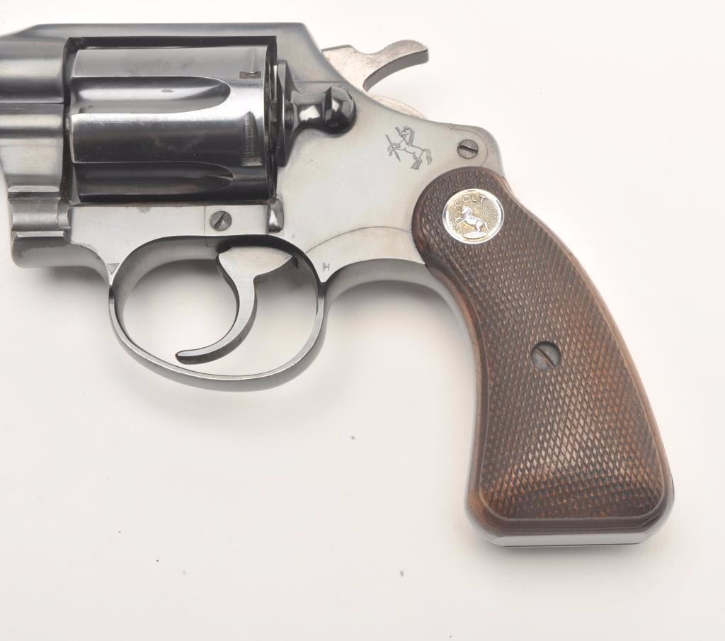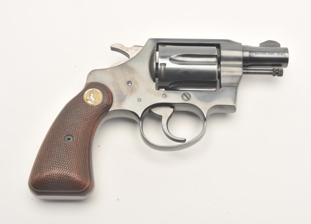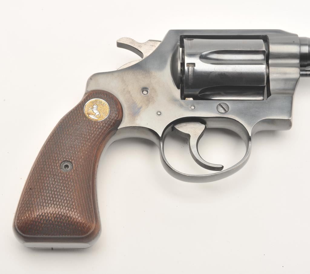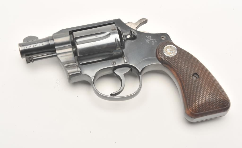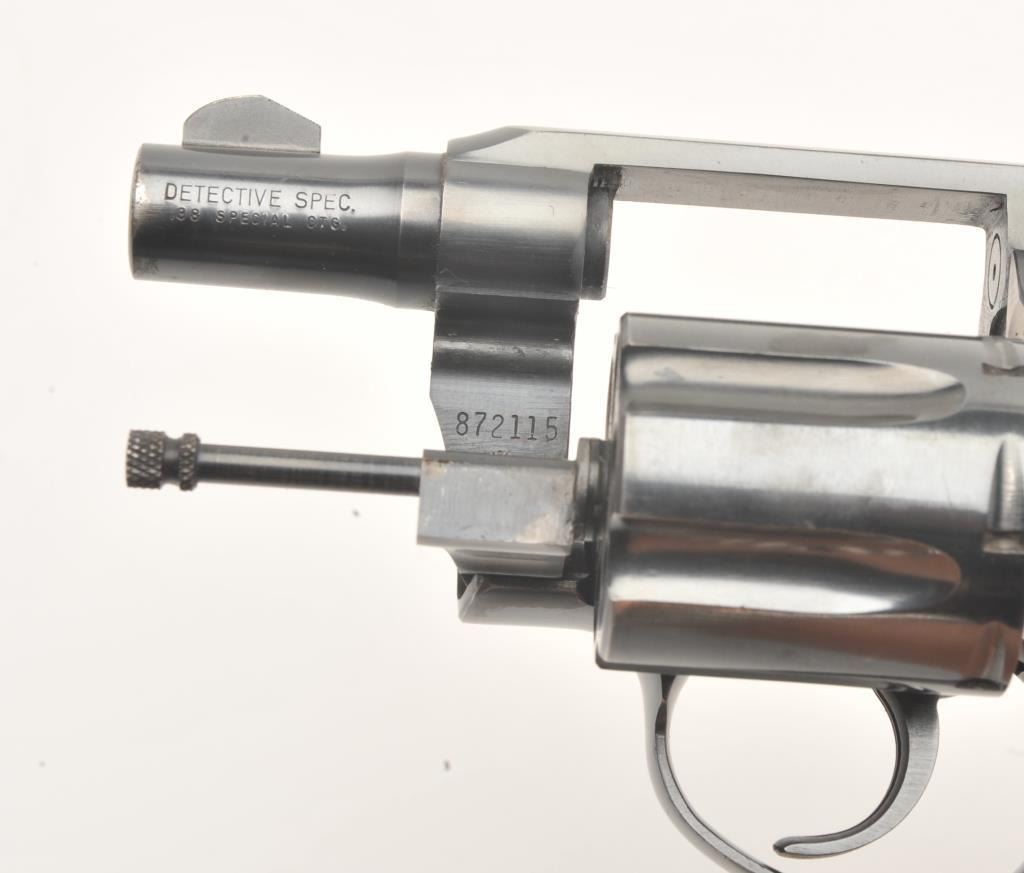 Colt Detective Special DA revolver, .38 Special caliber, 2” barrel, blued finish, checkered wood medallion grips, S/N 872115, in overall fine condition showing the majority of its original blued finish, slight muzzle wear, fine bore, action, markings and very good to fine grips. (Modern/PPT). Est.: $500-$1,000.