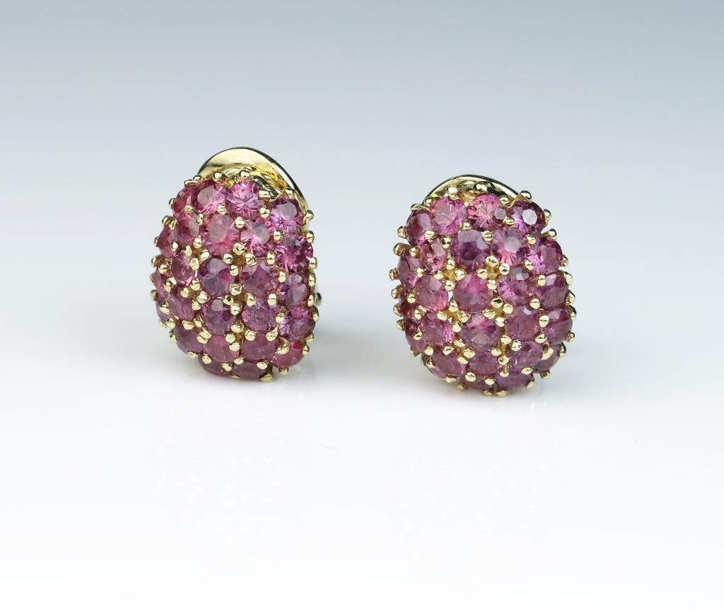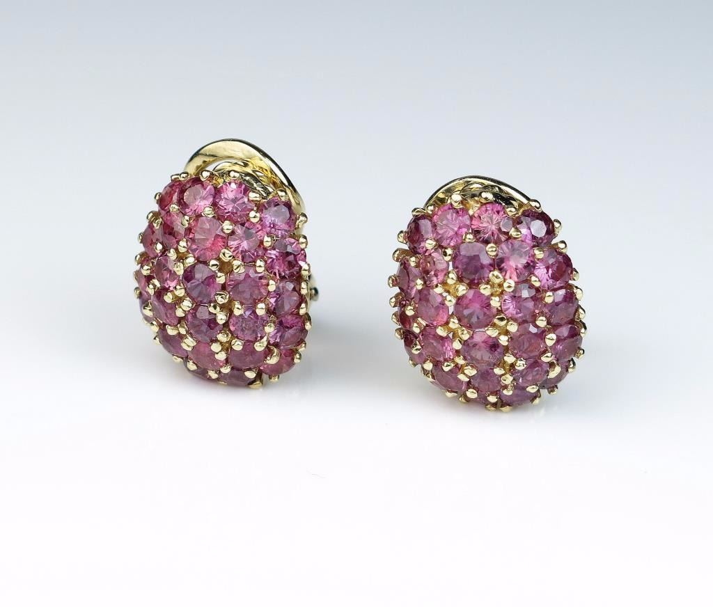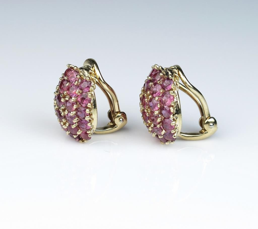 Lot 295 Gorgeous ladies earrings set with 56 round pink Tourmalines weighing approx. 4.00 carats in a 14 k