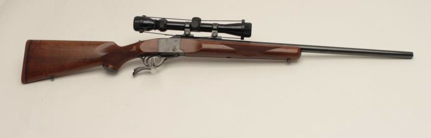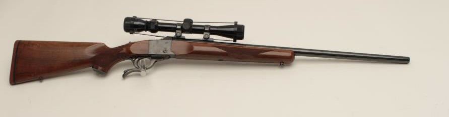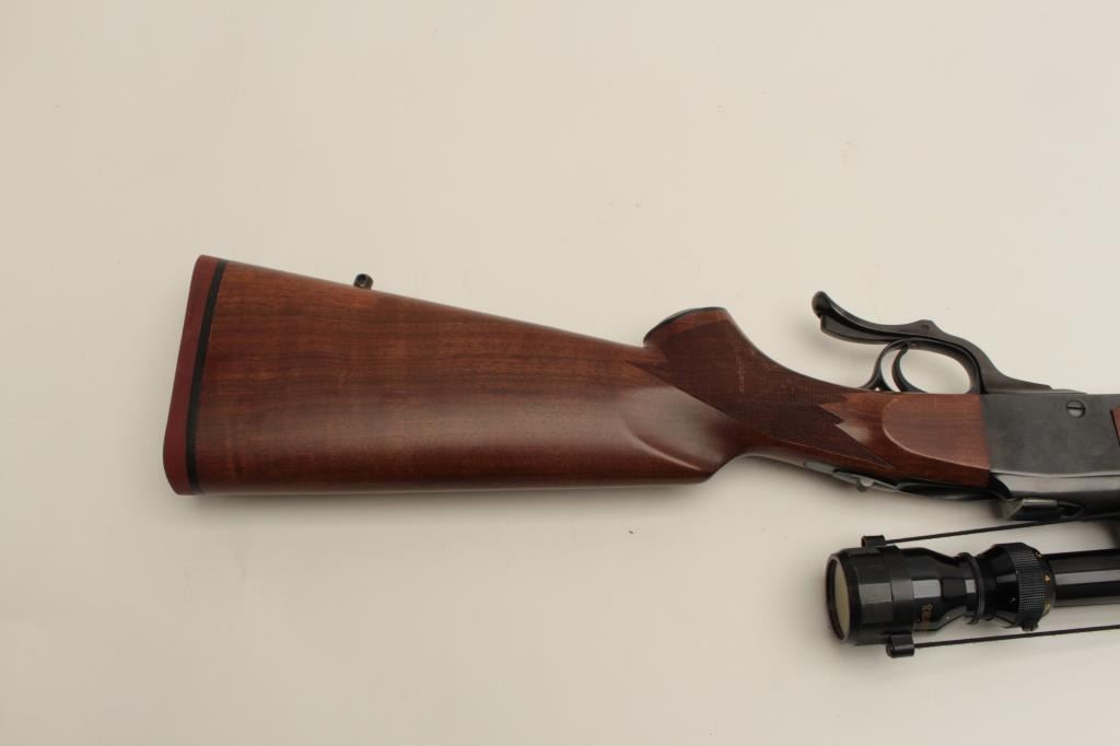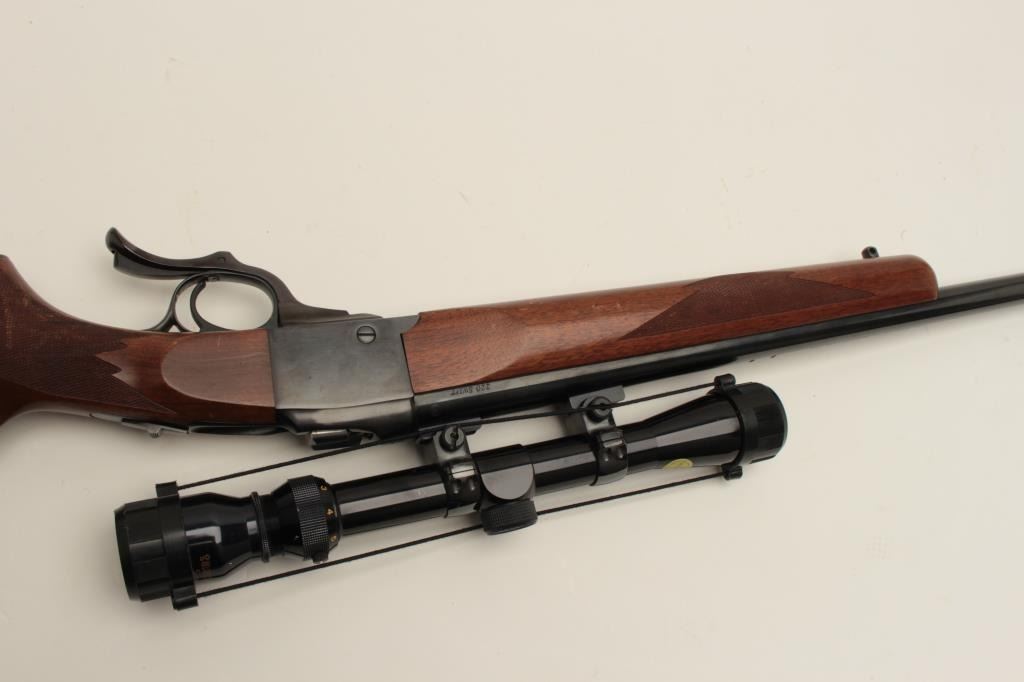 Lot 299 Ruger No. 1 single shot rifle, .220 Swift caliber, 26” round barrel, blued finish, checkered wood