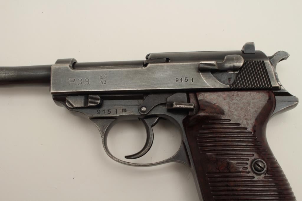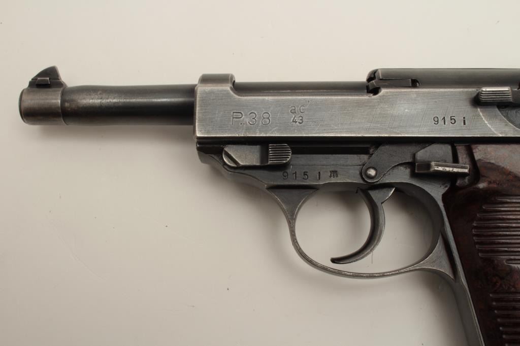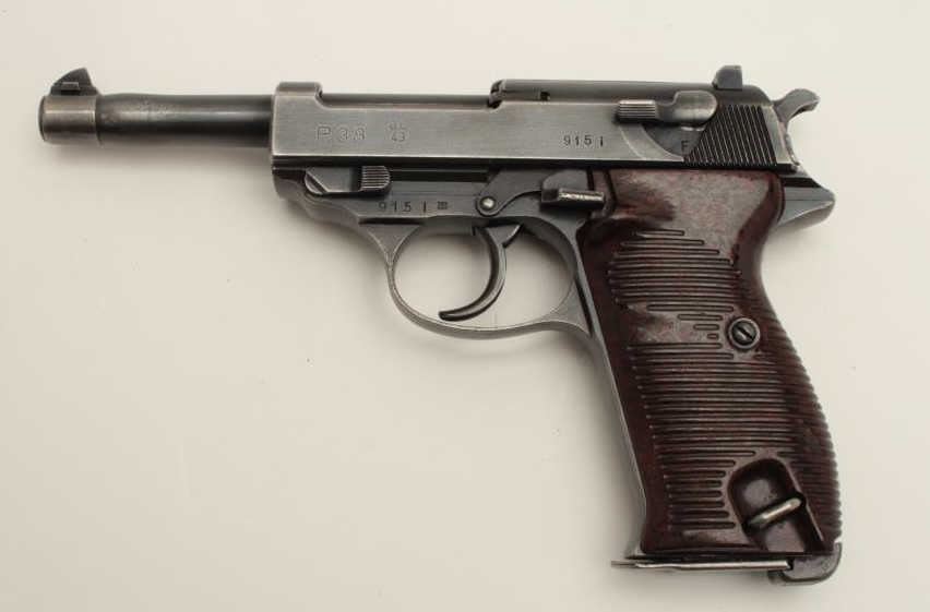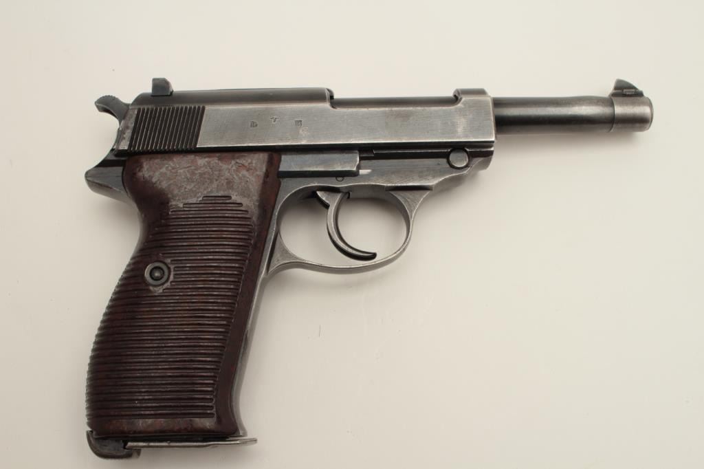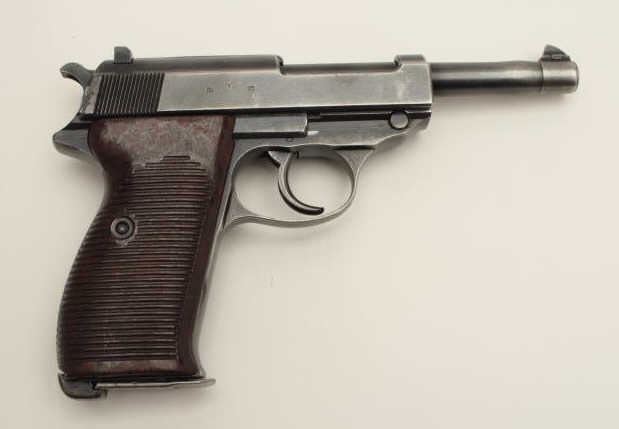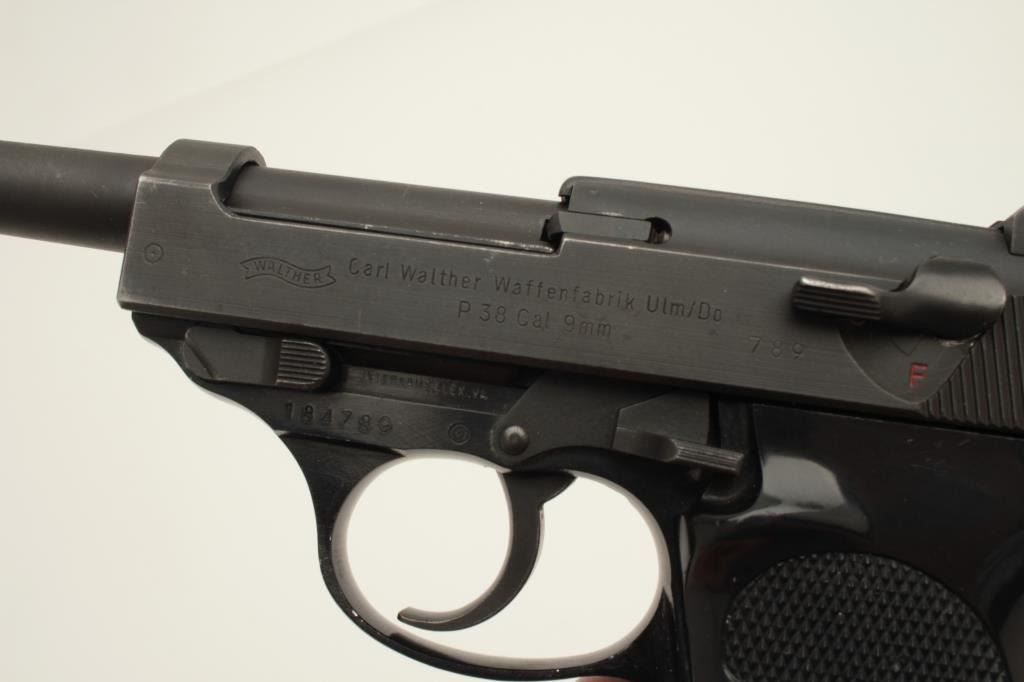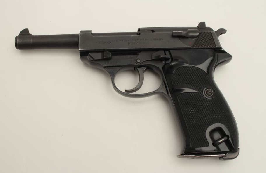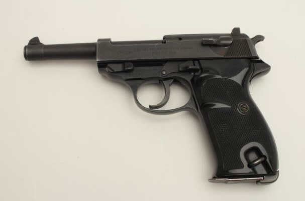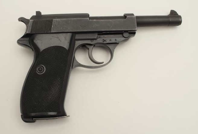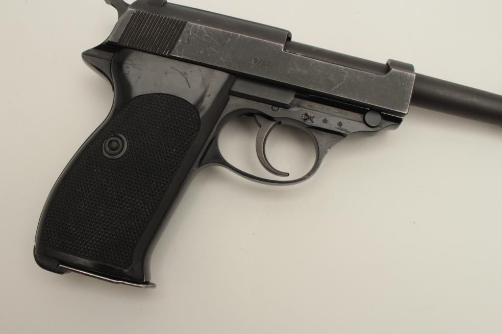 Lot 326 Walther Model P-1 DA semi-automatic pistol, 9mm caliber, 5” barrel, mat black finish, checkered bl