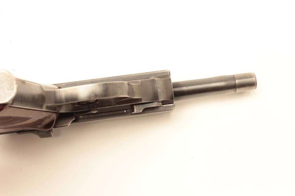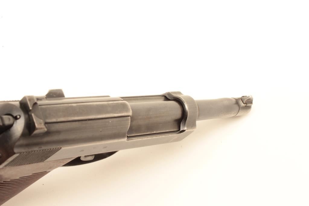 Lot 327 Walther Model P-38 DA semi-automatic pistol, 9mm caliber, 5” barrel that is bulged near the muzzle