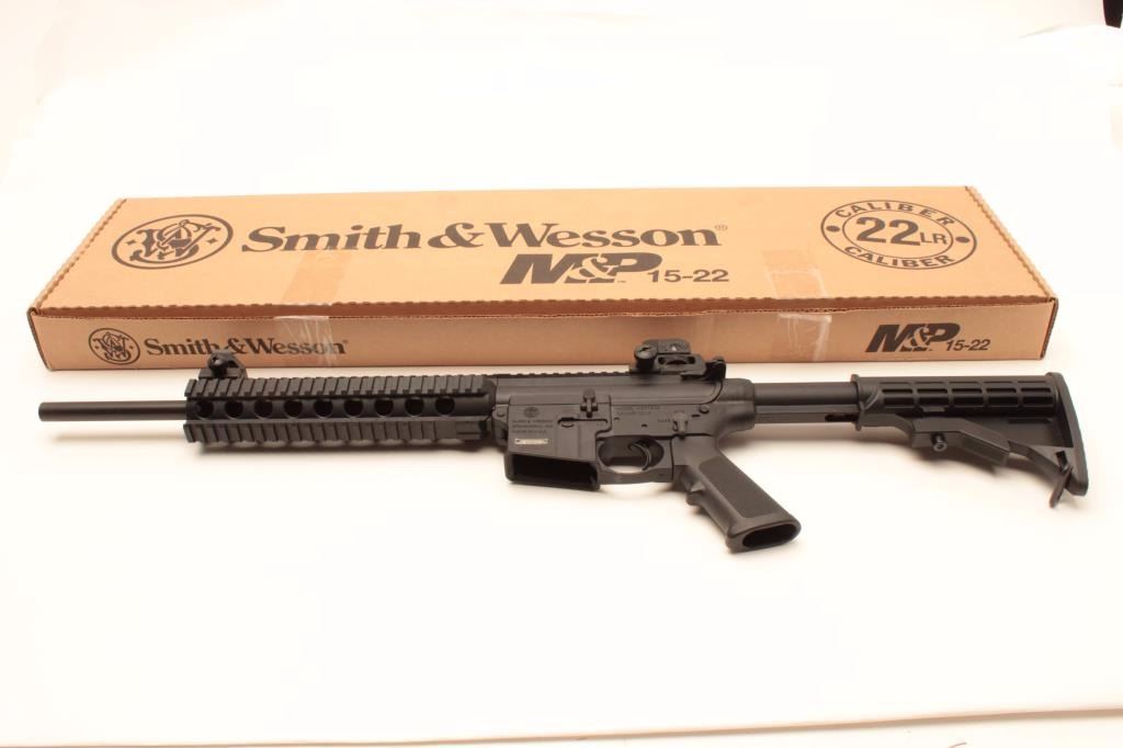 Lot 345 Smith & Wesson Model M&P 15-22 semi-automatic rifle, .22LR caliber, mat black finish, synthetic st