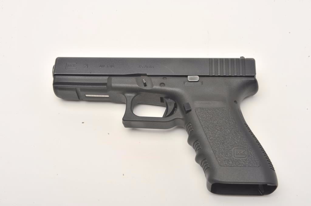 Glock Model 21 semi-automatic pistol, .45 caliber, 4.5” barrel, mat black finish, S/N PDG354, with one extra magazine and factory hardcase, in overall fine condition showing little use or handling. (Modern/NoPPT/Hi Cap. Mags NO CAL SALE). Est.: $300-$600.