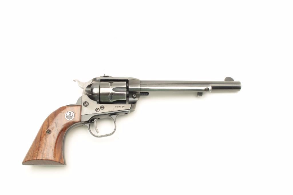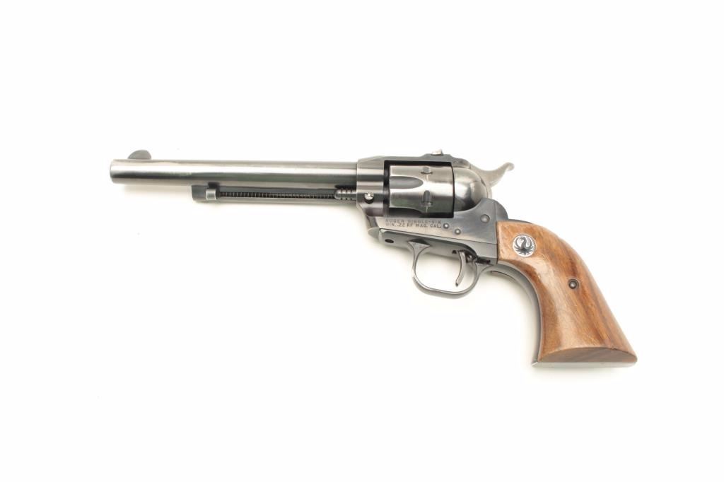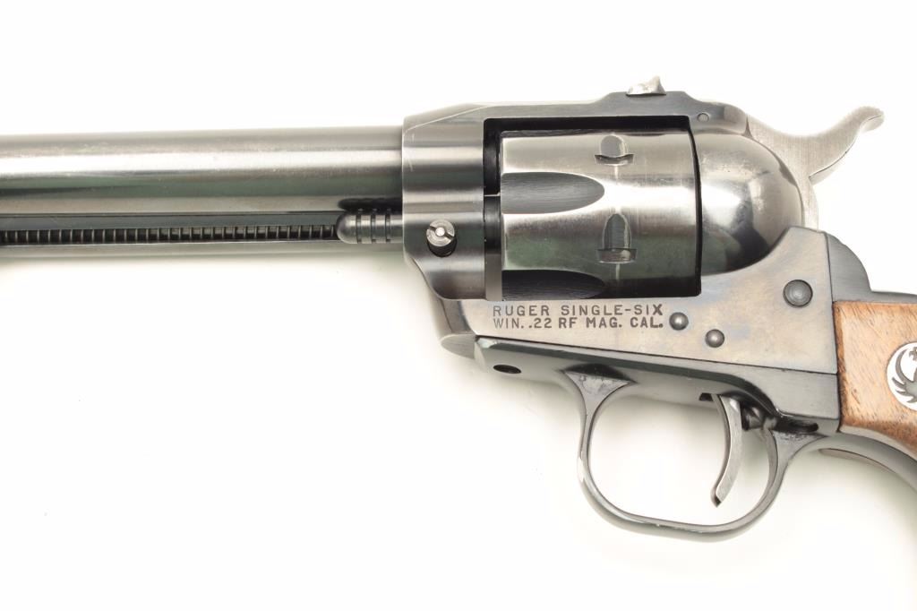 Lot 396 Ruger Single Six revolver, Win. .22RF Mag. caliber, 6.5” barrel, blued finish, wood medallion grip