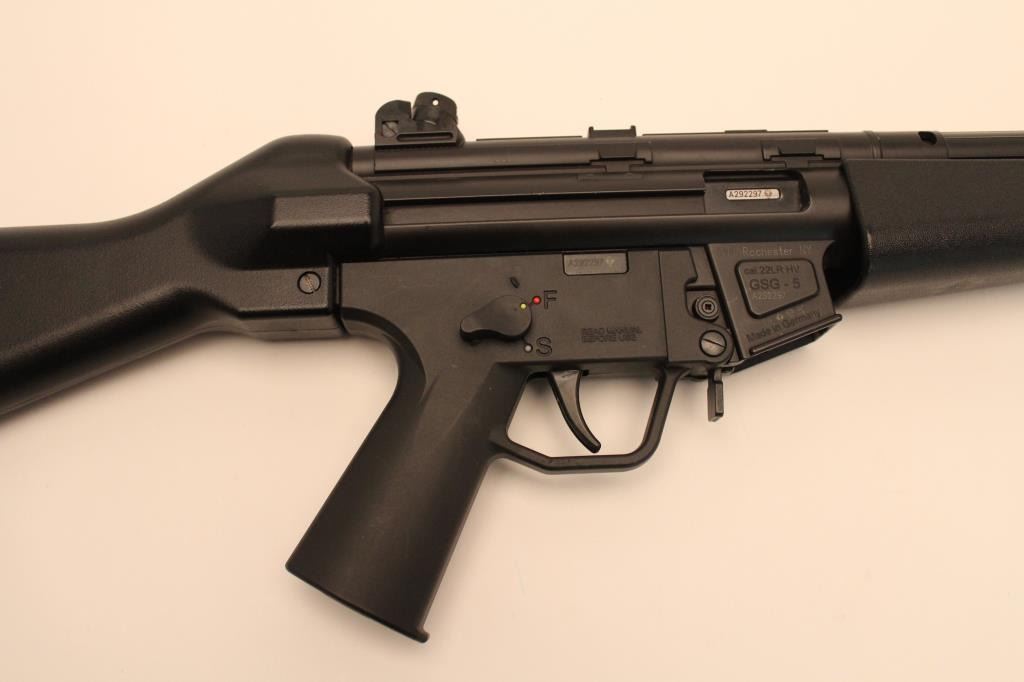 Lot 466 GSG-5 semi-automatic rifle, .22LR caliber, 16” barrel, black finish, synthetic stock, S/N A292297,