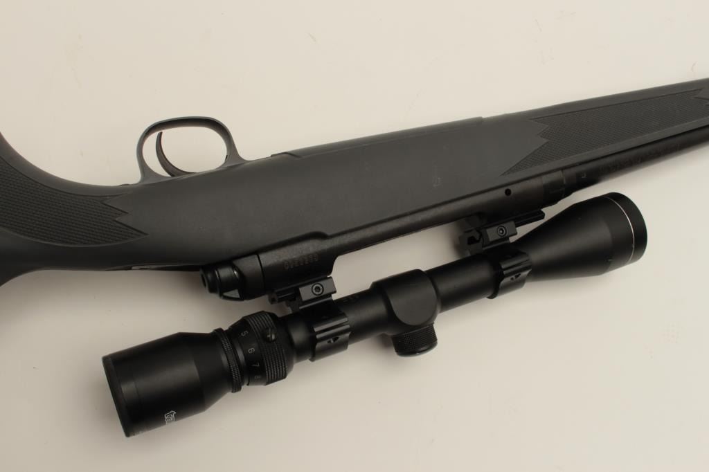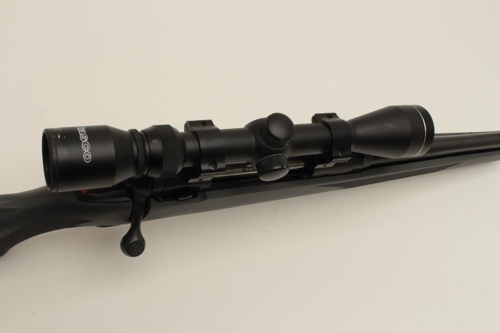 Stevens Model 200 bolt action rifle, .270 Win. caliber, 22” barrel, black finish, composite stock, S/N G999260, mounted with a Tasco scope displaying good optics, in overall fine condition with a fine bore,action, markings and stock. (Modern/No PPT). Est.: $250-$500.