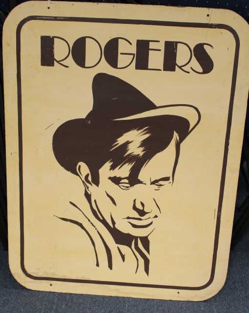 Lot 480 Large painted image of Will Rogers on masonite board, approximately 48” x 38” overall. Est.: