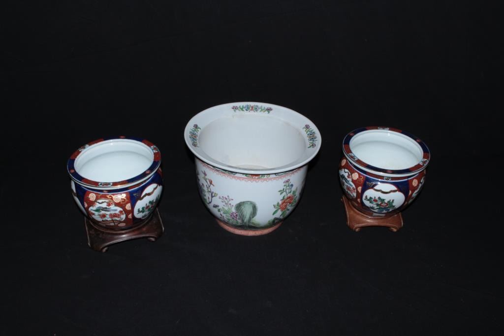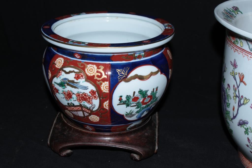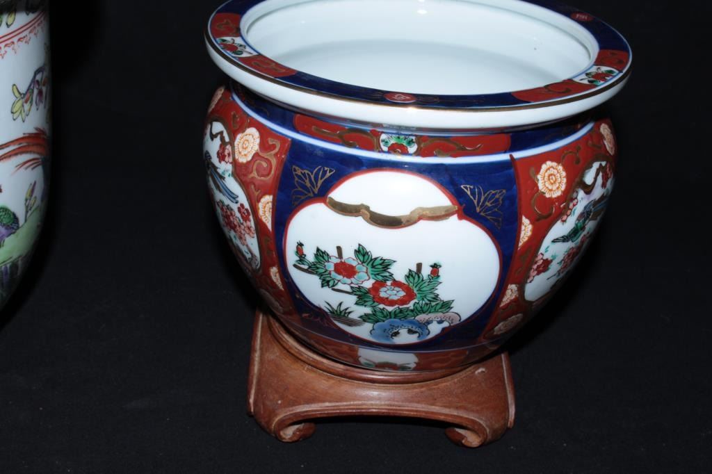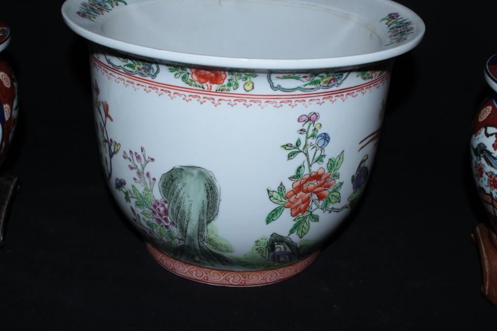 Lot 511 Lot of oriental porcelain from estate circa late 20th century. 1 Chinese planter with birds and a