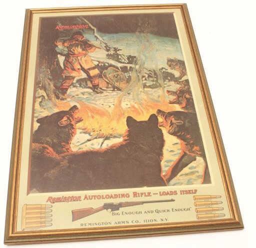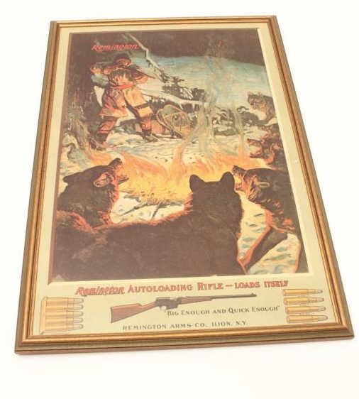 Framed color reproduction of an old Remington Auto loading rifle advertiser; approximately 31” x 21”; a great decorator. Est.: $50-$75.