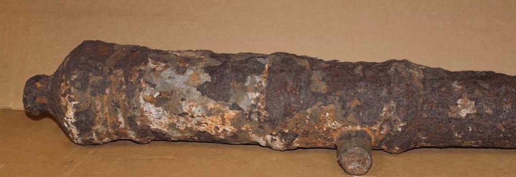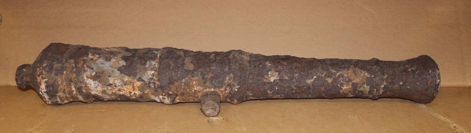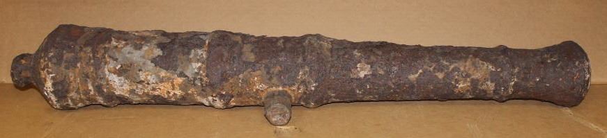 Revolutionary war cannon, approximately 40” overall and by tradition, found in the Delaware river in the 1950’s; Naval style, probably American made but no visible markings due to deterioration; relic butstable condition. Est.: $3,000-$6,000.