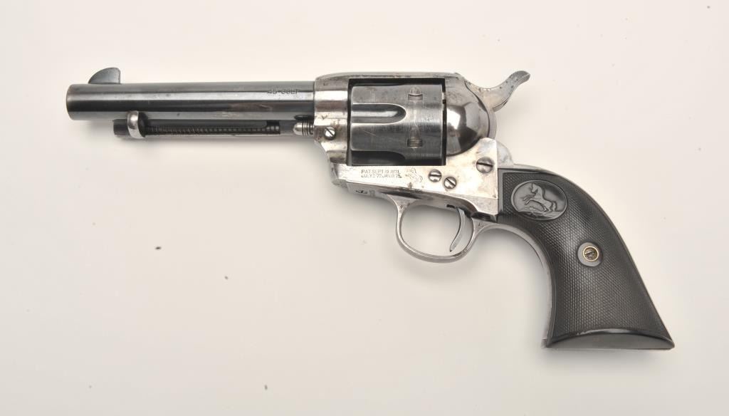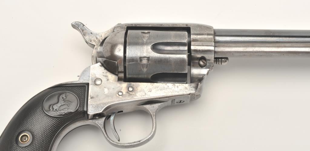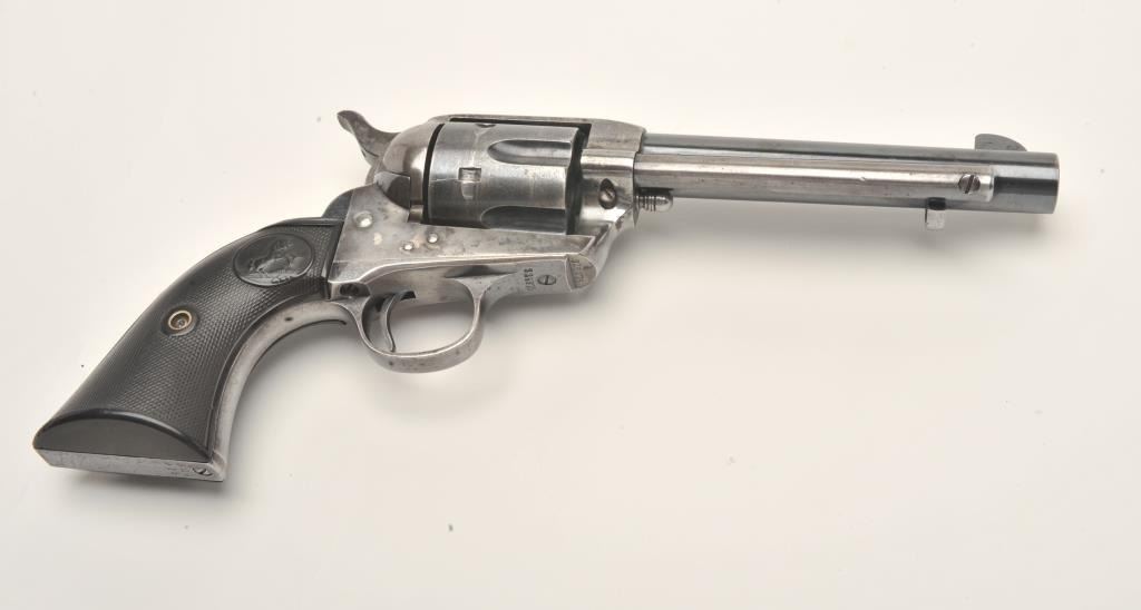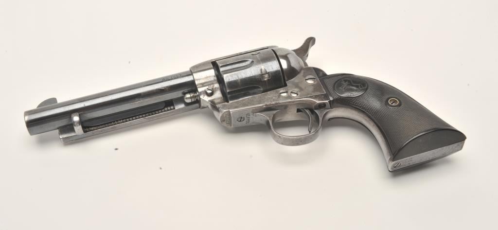 Lot 1151 Colt SAA revolver, .45 caliber, 5.5” barrel, blued and case hardened finish, checkered hard rubber