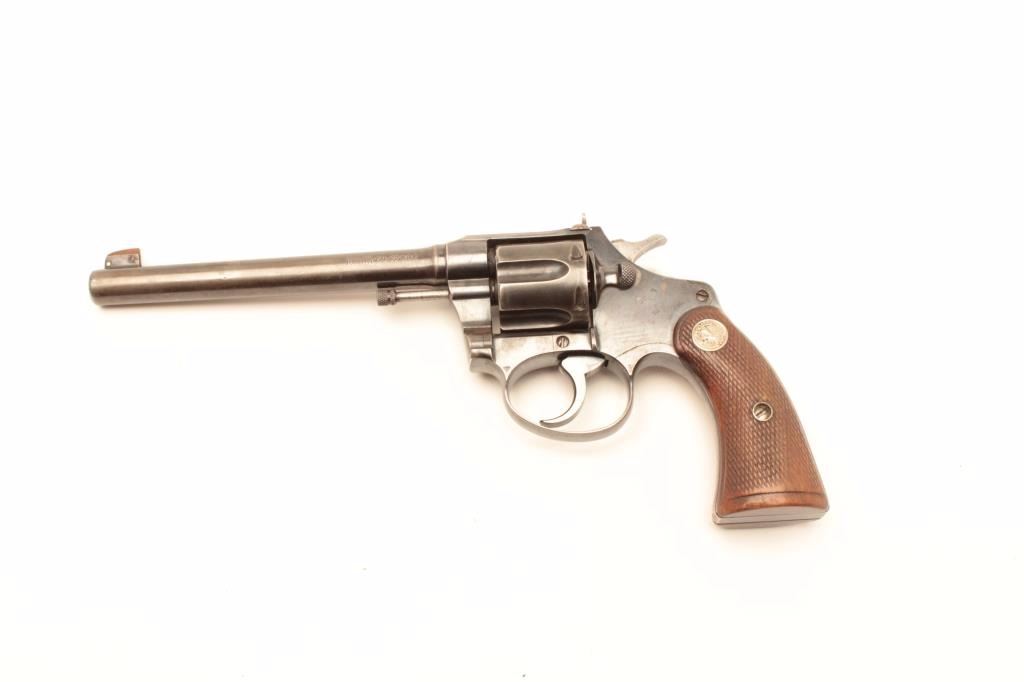 Lot 1198 Colt Police Positive revolver, .22W.R.F. caliber, 6” barrel, replaced rear sight, blued finish, ch