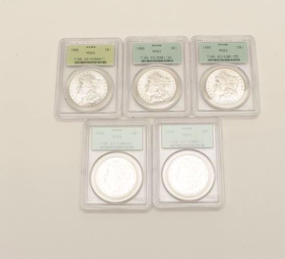 Lot 1434 PCGS Graded MS-63 U.S. Dollars 5 total. Dated 1886 Est:$275-550