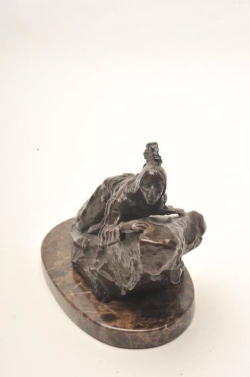 Lot 1441 Modern Casting after C. Kauba of Indian on Rock, 7 1/2" ht including base. Last 20 years. Est:$2