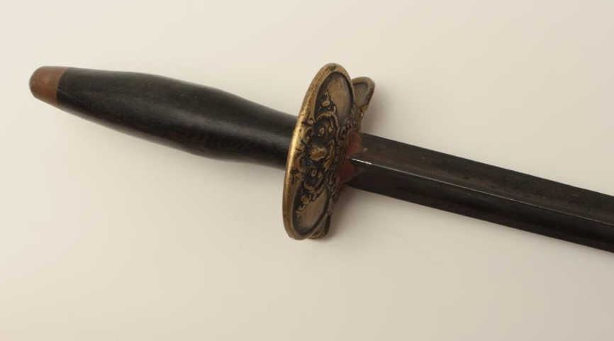 Lot 1524 Dagger made from 18th century small sword; grip also turned and replaced grip to be used as a plug