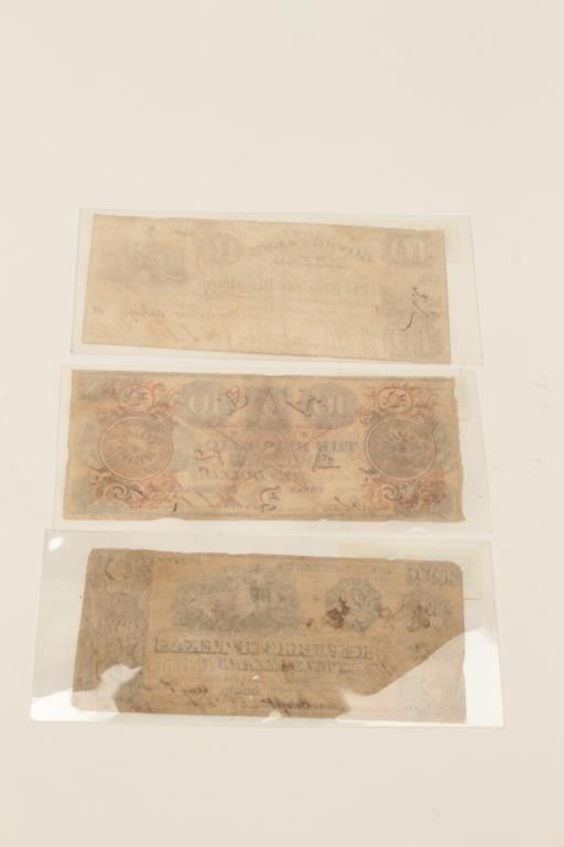 Lot 1529 Lot of 3 Texas Treasury notes including: 1. Republic of Texas $10 Treasury Dept. note, hand signe
