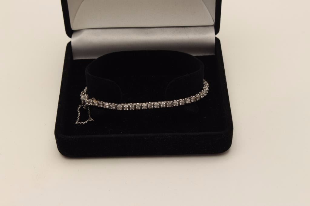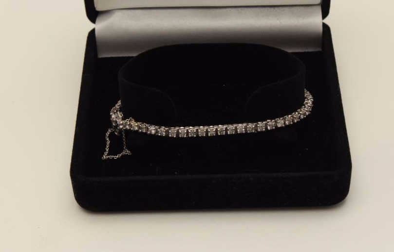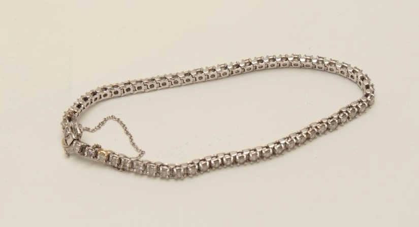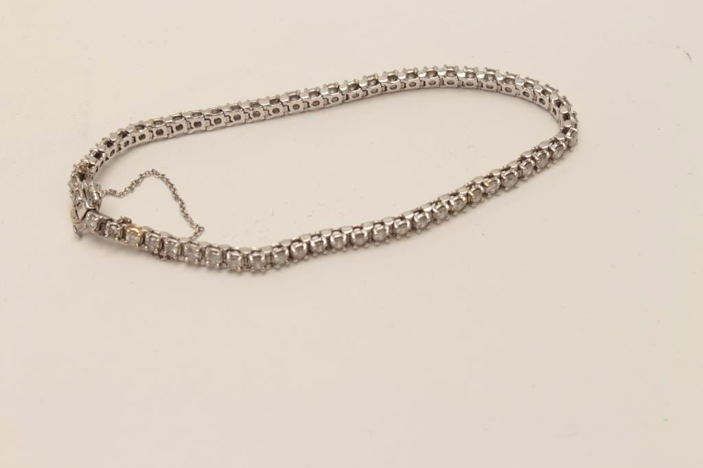 Lot 1553 One tennis bracelet in 14 k white gold set with approx 3ct of fine quality full cut diamonds. EST.