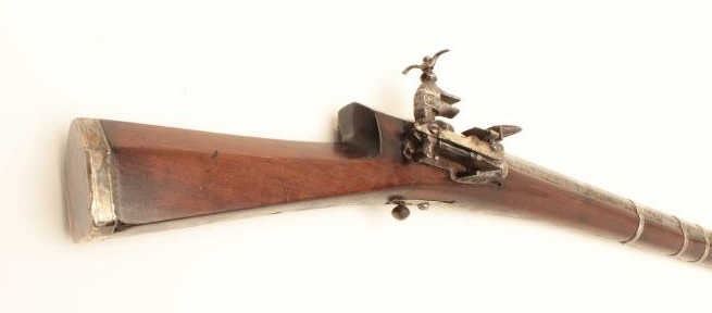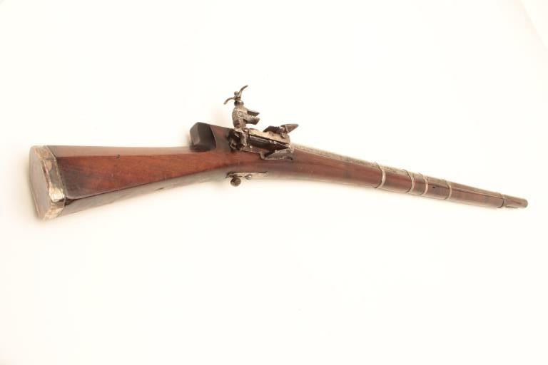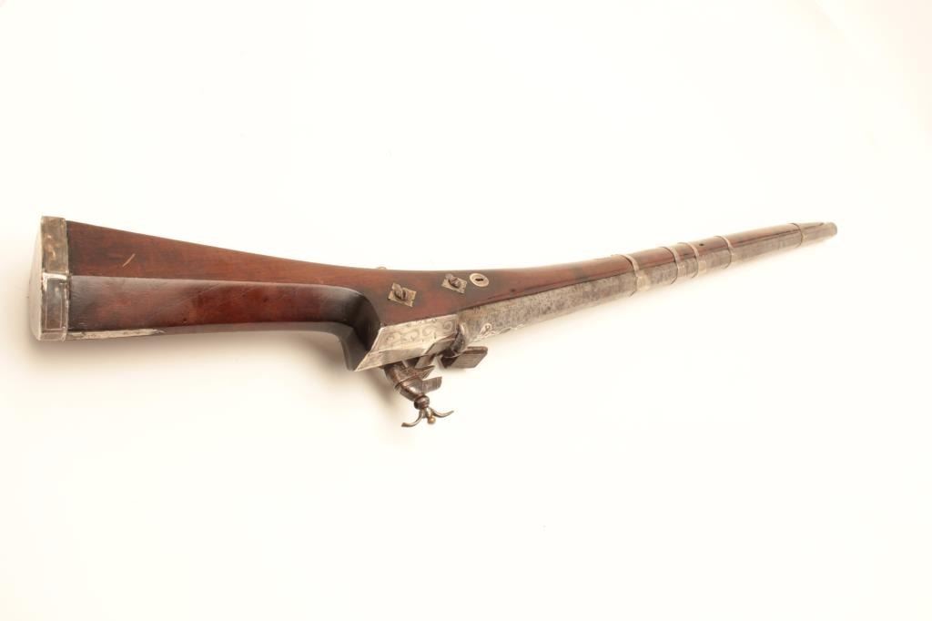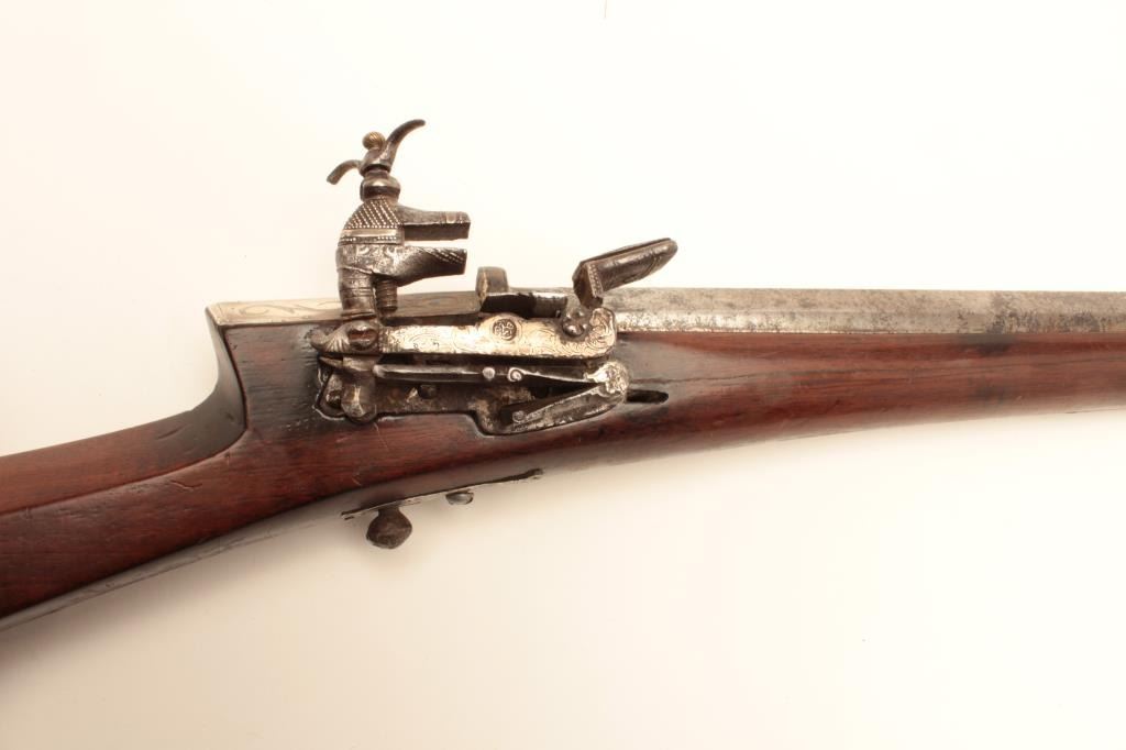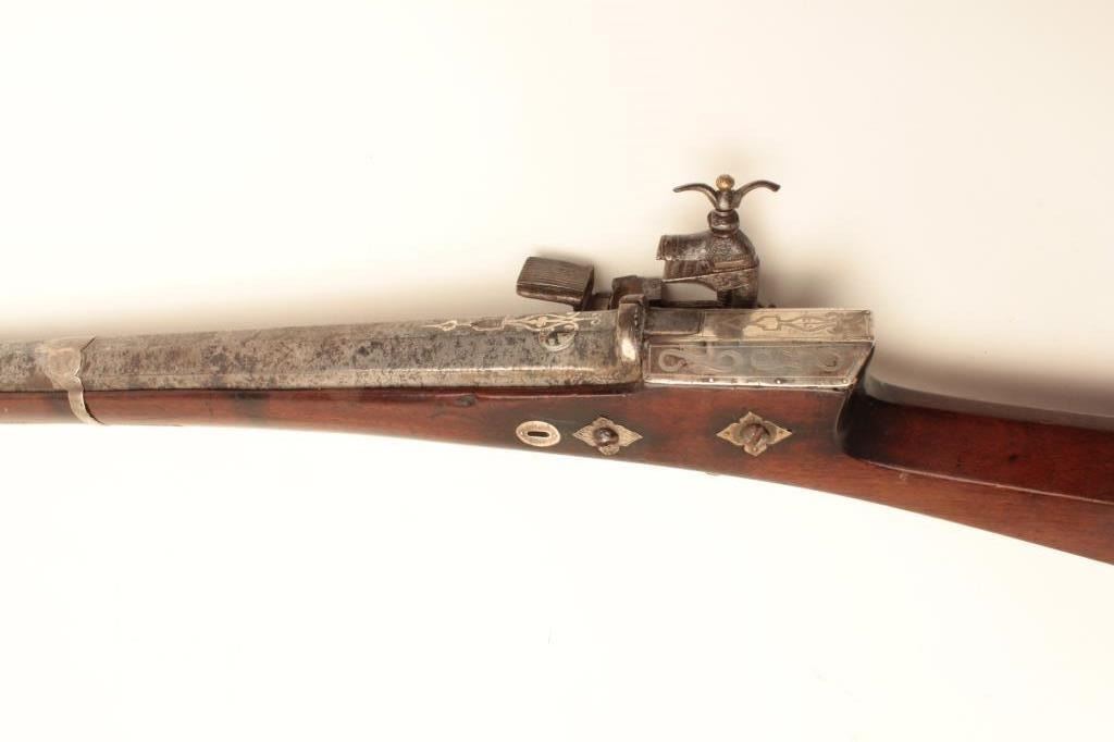 Lot 1601 High quality Ottoman Turk flintlock miquelet carbine with fancy silver ornamentation circa 18th to